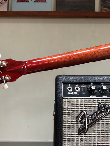 Standard appointments include a 22 fret fingerboard, solid mahogany neck and body, a set of humless P90s, and an aluminum wraparound bridge. Light aging of the hardware and finish are also part of the standard package. Custom options are available where we can allow.